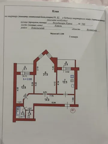 3-комнатная квартира в центре Ковеля по ул. Независимости, Площадь 55 м²