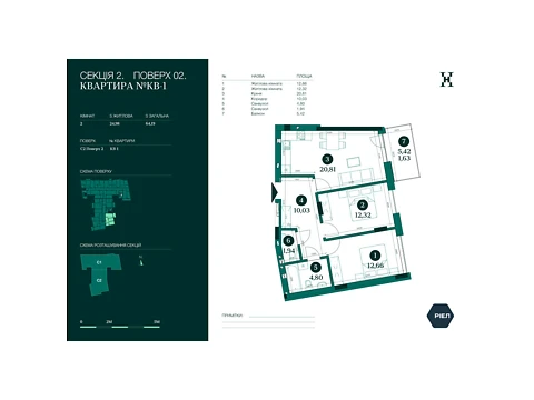 Продается 2-комнатная квартира напрямую от застройщика - РИЕЛ. Функциональная комфортная планировка 2-комнатной квартиры отлично подойдет для вашего уюта и досуга.