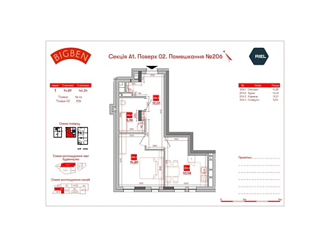 Площадь апартаментов - 42.01 м². Помещение расположено на 2 этаже 18-и этажного дома.