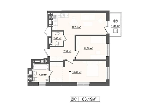 Современная планировка площадью - 63.18 м² создана специально для комфорта и уюта.