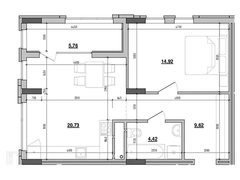 1 спальня (20 кв. м и большая кухня отделена дверью 18 кв. м)