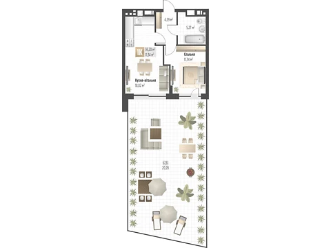 Современная планировка площадью - 59.2 м² создана специально для комфорта и уюта.