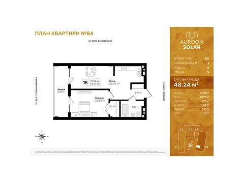 Продается 1-комнатная квартира во Львове в ЖК Auroom Solar!