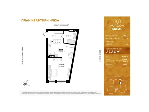 Продаю 1 кімн.квартиру в ЖК AUROOM Solar на вул.Соняшниковій. Забудовник Auroom. Квартира розташована у 1 секції, на 11 поверсі з 16, вигляд з вікон у вн.двір в сторону вул.Зеленої. Східна сторона.