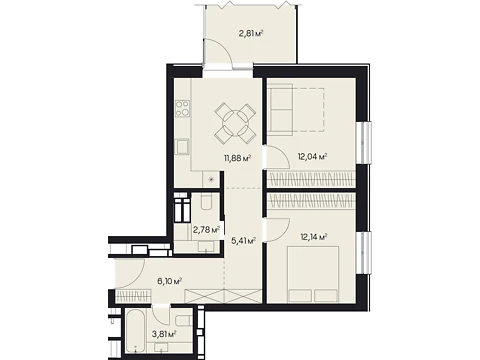 Площадь жилья данной планировки 56.81 м².