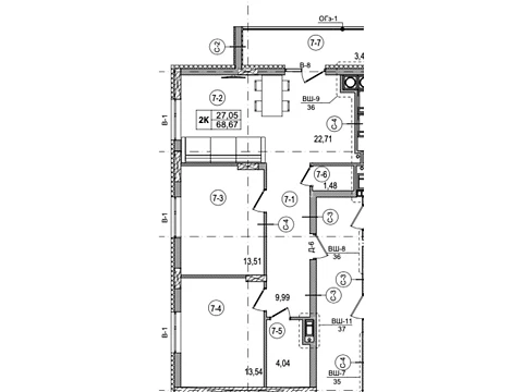 Современная планировка площадью - 66.79 м² создана специально для комфорта и уюта.