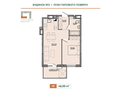 Квартира расположена на 2 этаже 8-и этажного дома. Адрес новостройки - Сокольники, Героев Крут, 6В.