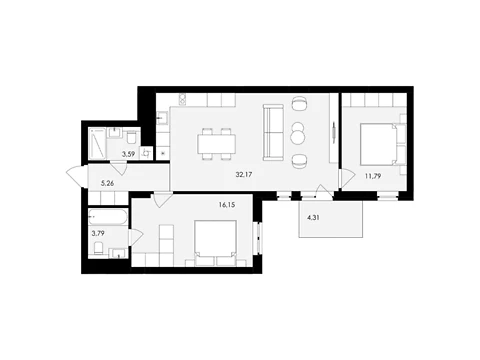 Современная планировка площадью - 83.09 м² создана специально для комфорта и уюта.