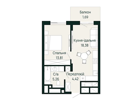 Продается 1-комнатная квартира напрямую от застройщика - Интергал-Буд. Функциональная комфортная планировка 1-комнатной квартиры отлично подойдет для вашего уюта и досуга.