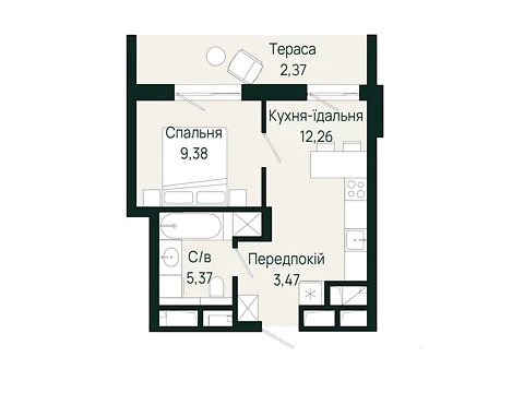 1-комнатная квартира, дом клубного типа ЖК SAN MARCO с. Сокільники.