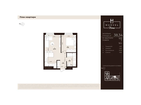 Современная планировка площадью - 38.34 м² создана специально для комфорта и уюта.