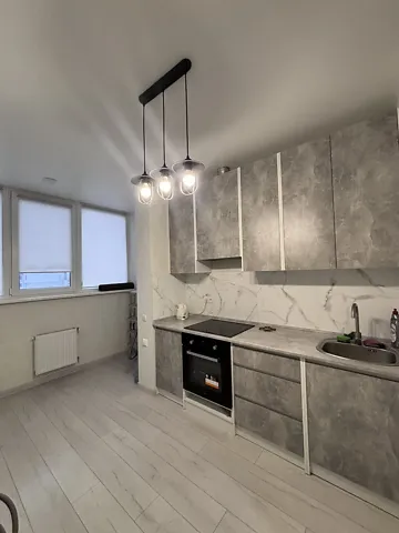 В квартире выполнен современный ремонт, встроенная кухня с бытовой техникой.