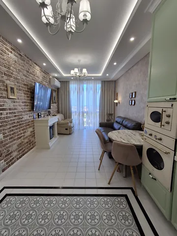 Идеальная квартира с дизайнерским ремонтом в новом доме на Костанди. Из панорамных окон вид на море и частный сектор. Большая кухня-гостиная, укомплектована дорогой мебелью и брендовой бытовой техникой. Отдельная спальня с огромной кроватью. Всё сделано в едином стиле.