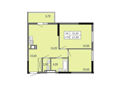 Площадь жилья данной планировки 61.5 м².