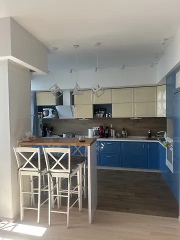 Просторная квартира с дизайнерским ремонтом, общей площадью 110, 4 кв.м., распланирована в большую уютную кухню- студию, две комнаты. Из кухни выход на открытый балкон. В квартире два санузла, в прихожей гардеробная.