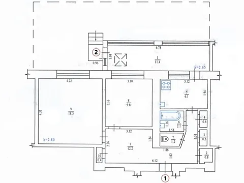 Квартира с центральным отоплением, есть колонка для подогрева воды.