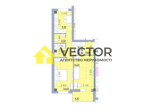 Загальна площа 67м2, простора кухня 10м2