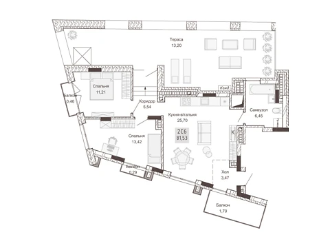 Современная планировка площадью - 69.3 м² создана специально для комфорта и уюта.
