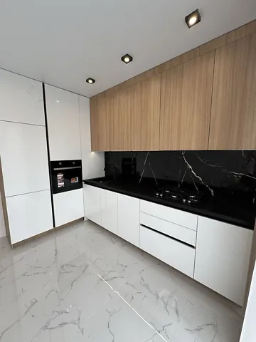 Качественный ремонт, стильная кухня со встроенной техникой.