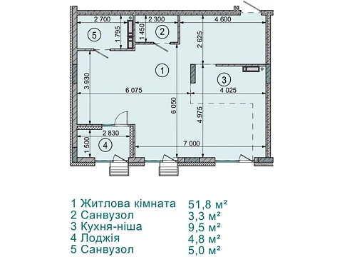 Общая площадь 50, 6 кв.м.