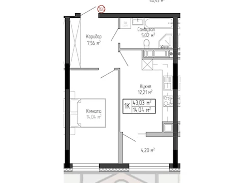 Современная планировка площадью - 43.03 м² создана специально для комфорта и уюта.