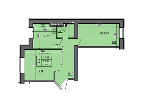 Современная планировка площадью - 60.83 м² создана специально для комфорта и уюта.