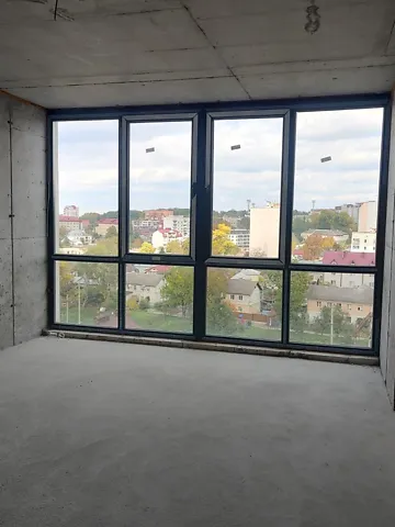 Просторная пустая квартира в сданном обжитом доме, удобная планировка, панорамные окна в комнате.