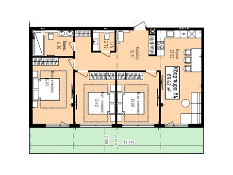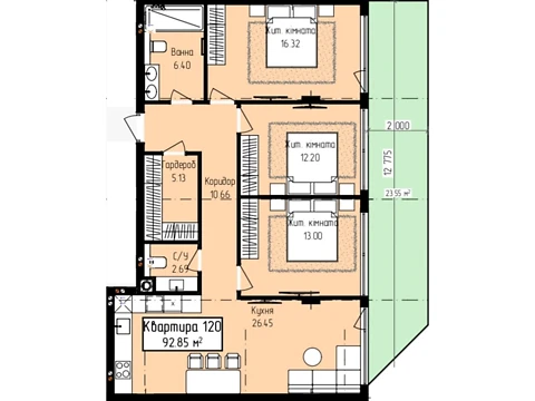 Современная планировка площадью - 89.62 м² создана специально для комфорта и уюта.