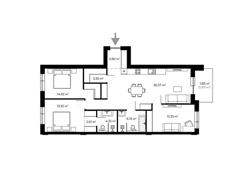 Современная планировка площадью - 101.2 м² создана специально для комфорта и уюта.