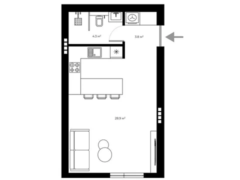 Площадь жилья данной планировки 37 м².