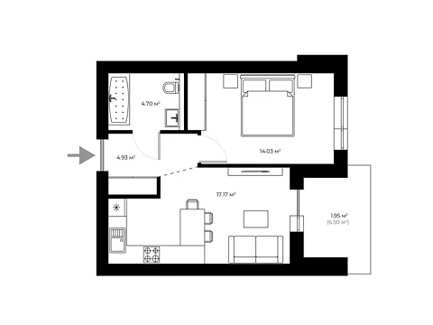 Продается 1-комнатная квартира напрямую от застройщика - Gazda. Функциональная комфортная планировка 1-комнатной квартиры отлично подойдет для вашего уюта и досуга.