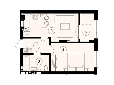 Современная планировка площадью - 42.87 м² создана специально для комфорта и уюта.
