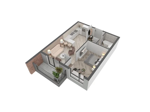 Эта современная комфортная планировка 1-комнатной квартиры с зонами для досуга и работы. Площадь 1-комнатной квартиры - 40.72 м².