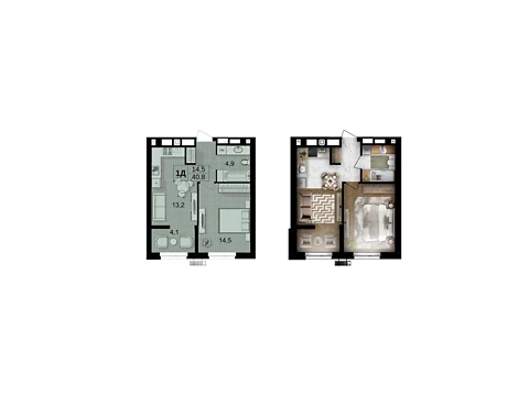 Современная планировка площадью - 40.8 м² создана специально для комфорта и уюта.