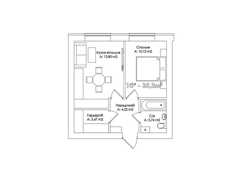 Современная планировка площадью - 35.3 м² создана специально для комфорта и уюта.