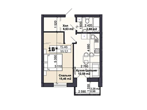 Современная планировка площадью - 39.52 м² создана специально для комфорта и уюта.