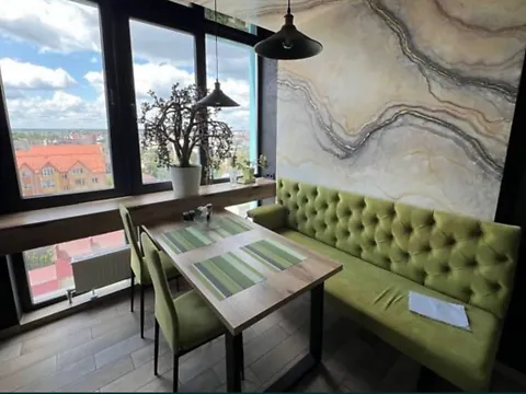 В приміщенні виконаний дизайнерський ремонт з високоякісних матеріалів, завдяки панорамним вікнам дуже просторо та світло.