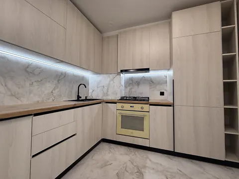 Квартира с хорошим качественным ремонтом, в теплых светлых тонах, не угловая, очень светлая, по всей квартире теплый пол, кухня студия, с возможностью сделать раздвижные двери между комнатами. Установлен кухонный гарнитур, а также духовой шкаф, индукционная плитка и вытяжка.