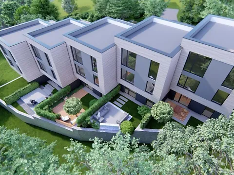 Продажа таунхауса по улице Чумацкая. В доме две террасы, панорамные окна и возможность в цокольном этаже обустроить собственный спортзал.