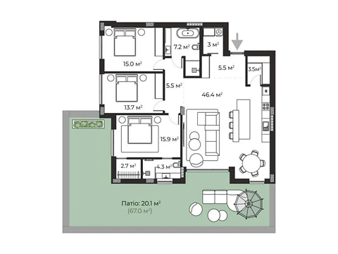3 комнаты