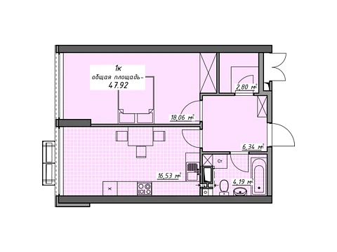 Общая площадь 32, 2 м².