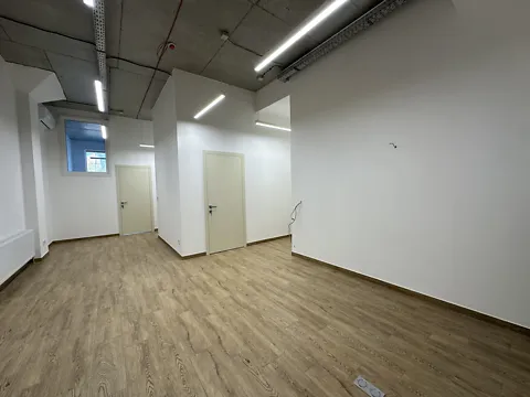 Первый этаж, два помещения с открытой планировкой + кабинет.