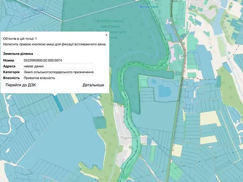 Земельный участок сельскохозяйственного назначения, площадью 2,7986 га, с целевым назначением для индивидуального садоводства, угодья - многолетние насаждения, форма собственности - коммунальная. Кадастровый номер земельного участка 7122884400:05:001:0748, которая расположена за пределами с.