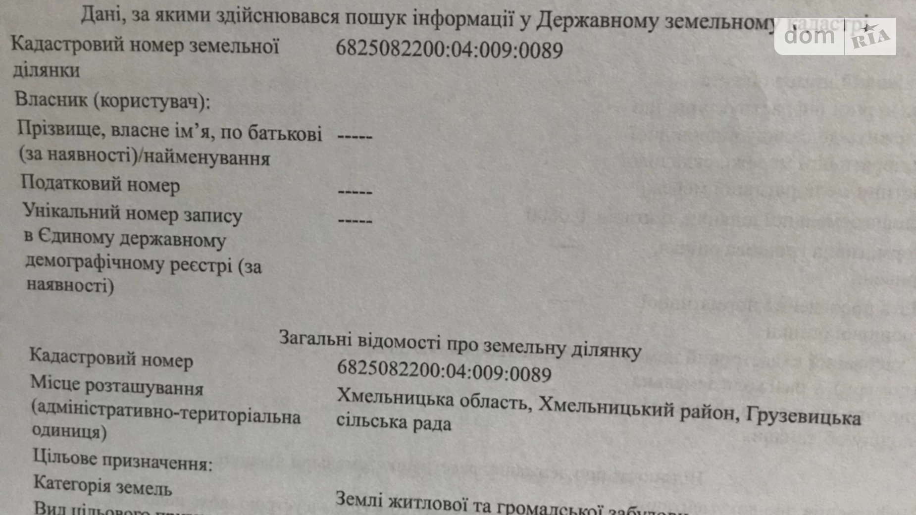 Кадастровий:XXXXXXXX (XXX) XXX-XX-XX 454
