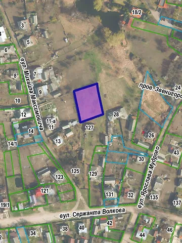 Продажа права собственности земельного участка площадью 0,1000 га по ул. Сержанта Волкова (около дома № 125) (кадастровый номер 7110136700:01:016:0067) в г. Черкассы для строительства и обслуживания жилого дома, хозяйственных построек и сооружений (приусадебный участок).