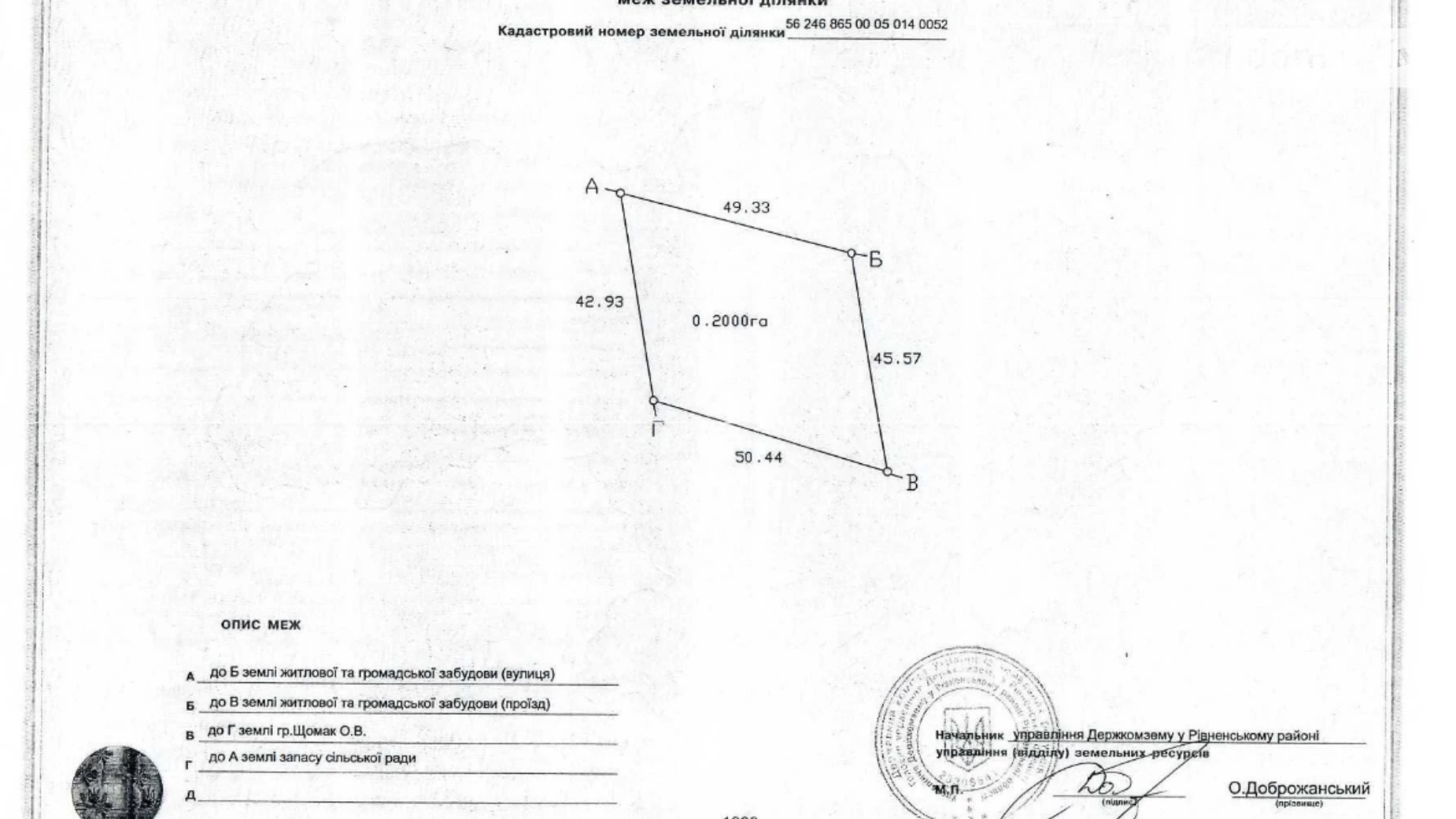 Продам земельный участок под строительство в селе Кустин Ровненского района.