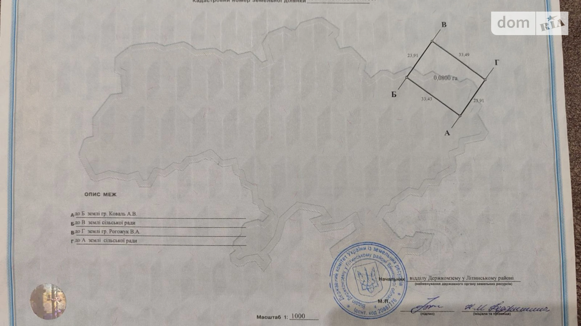 Продажа участка в с. Петрик! Ровная, приватизированная.