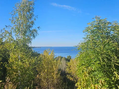 Вдоль леса и Киевское водохранилище.