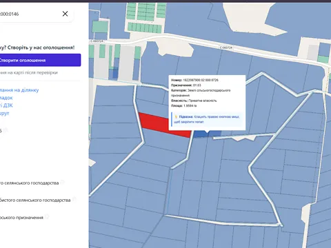 Земельный участок с целевым назначением: 01.01 Для ведения товарного сельскохозяйственного производства, общей площадью 5.7692 га, кадастровый номер которого 1820985300:06:000:0162, местоположение: Житомирская область, Брусиловский район, Соболевский сельский совет, состав угодий: пашня.