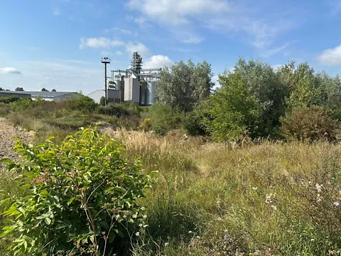 Участок огорожен сеткой, есть рама от откатных ворот.